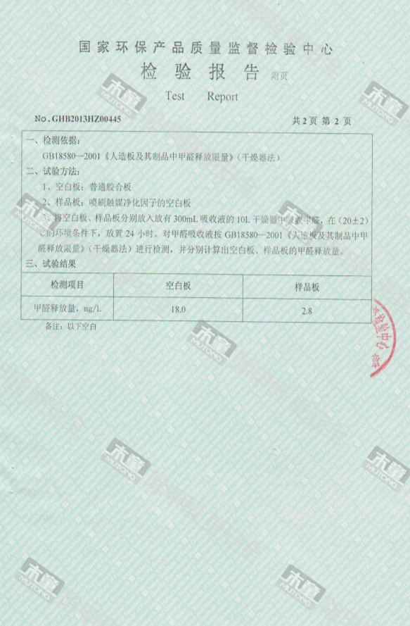 木童除醛2號三代效果檢驗報告2017
