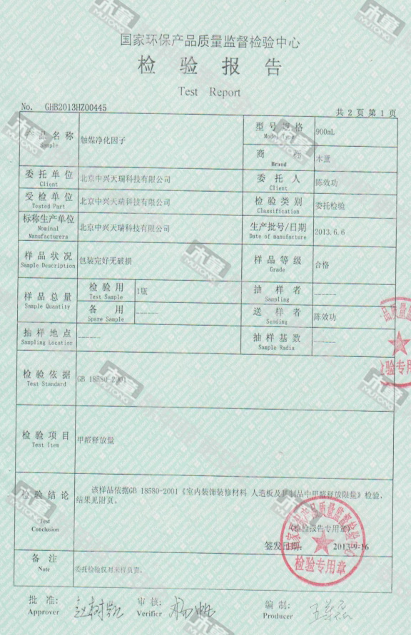 木童觸媒凈化因子效果檢驗報告